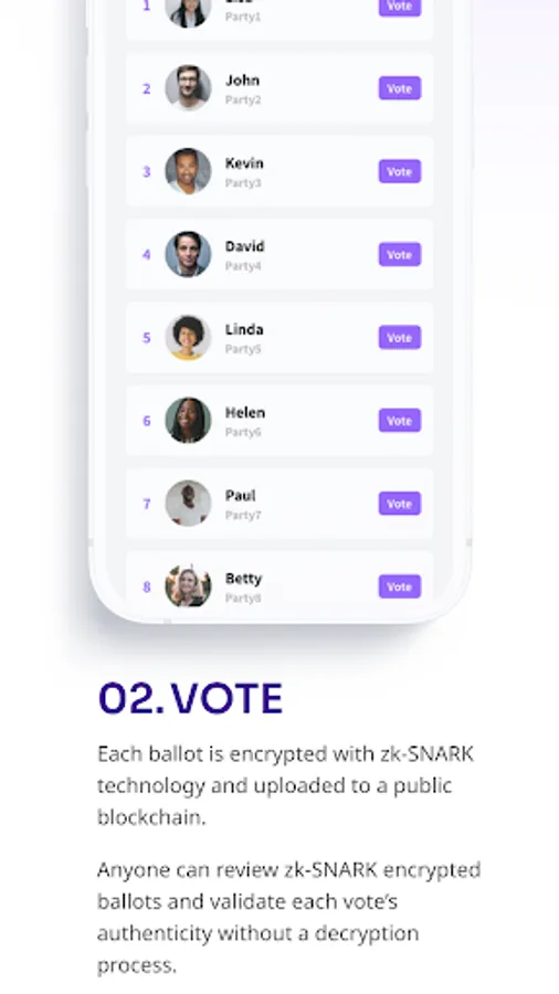 zkVoting (zero-knowledge voting) is the world's best voting app that supports voter privacy by utilizing zk-SNARKs (zero-knowledge Succinct Non-interactive ARguments of Knowledge) zero-knowledge proof technology.