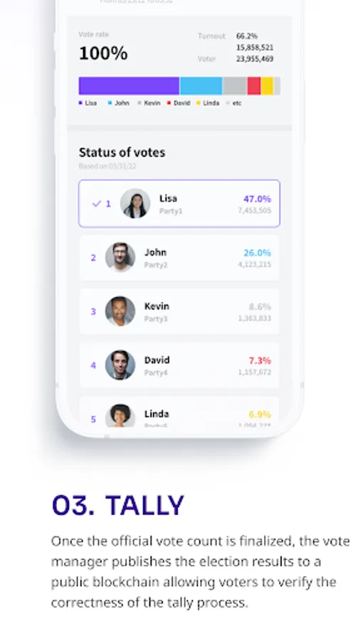 Tally verifiability: Anyone can verify that the voting results are correct.