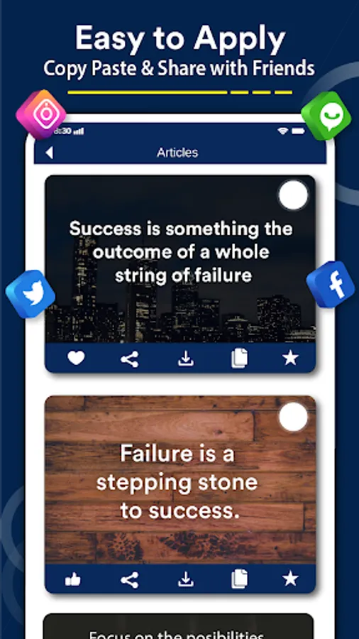 For better relationships, you can find daily quotes for couples and romantic love quotes in the Daily Quotes and Sayings app. Self-motivation quotes or being positive quotes boost your confidence when you talk to anyone. Positive life quotes and Motivational quotes for success are very helpful to stay positive and hopeful. You can send friendship quotes directly from this meaningful friendship quotes or friendship day quotes app to your friends and show your love to them. Motivational quotes in English, daily quotes, and blessings are an effective way to relax and reset your motivation. Good thoughts for students can help to focus their thoughts, clear away the mental clutter, and allow them to move forward with renewed enthusiasm by using the study motivation quotes and positive quotes for the work app. Positive life quotes and self-motivation quotes can be a great way to center yourself and focus on what is important in life. Powerful motivational quotes and small thoughts of the day can help reduce stress, boost your energy, and provide motivation for taking positive action.