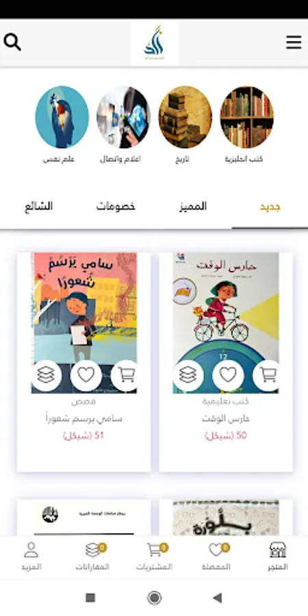 * An online store for selling original paper books on a variety of topics. We have books for children, books of religion, Islamic thought, history, stories, novels, literature, natural and applied sciences, sociology, psychology, politics, economics, philosophy, Palestinian cause, culture and many more.