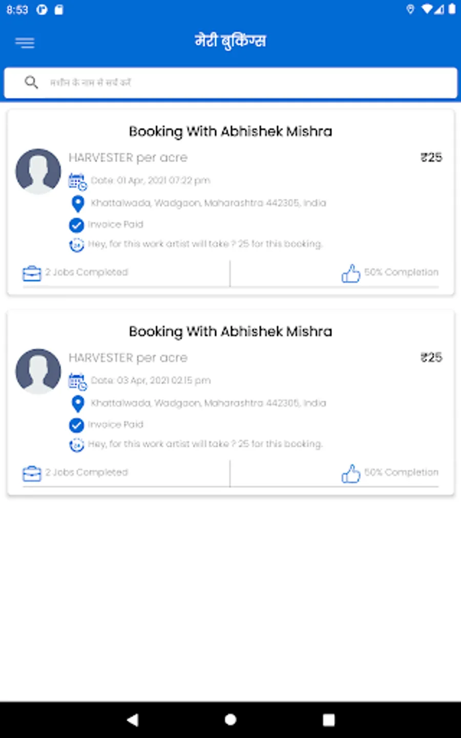 Equipment owners and farmers hiring equipment on rent do not need to pay any service charges to Zaaruri Kisan Services.