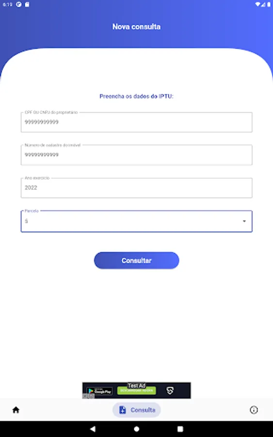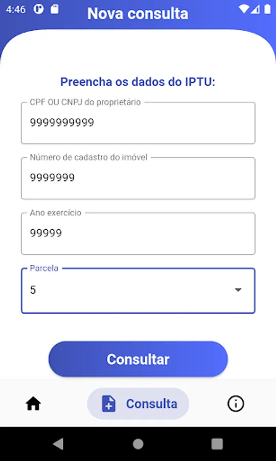 Through our application you can consult your IPTU installments for any year, even if they are late. Issue the bank slip and make the payment at your financial institution.