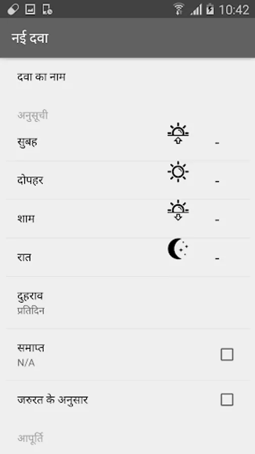 This app is based on 'RxDroid' by Joseph C. Lehner. We have modified the code to fix certain issues and add Hindi language support.