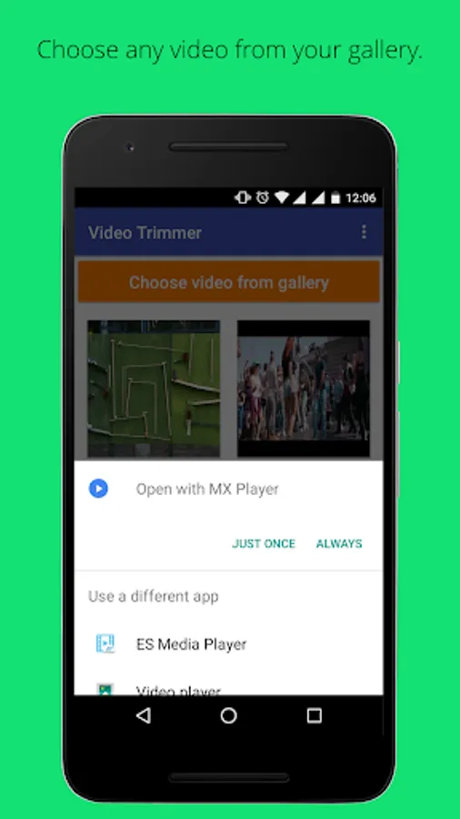 Video Trimmer shows list of all the trimmed videos for quick playback anytime.