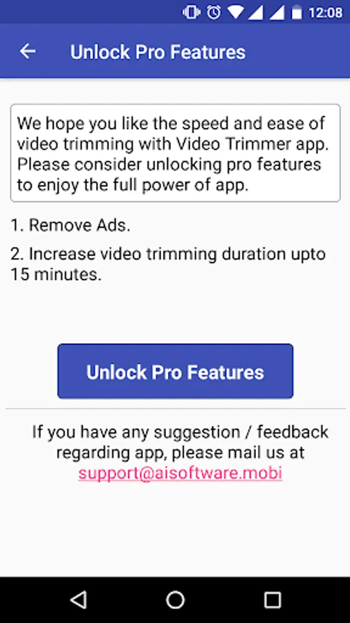Free version supports video trimming duration up to 1 minute. Using in-app purchase you can extend this duration up to 15 minutes.