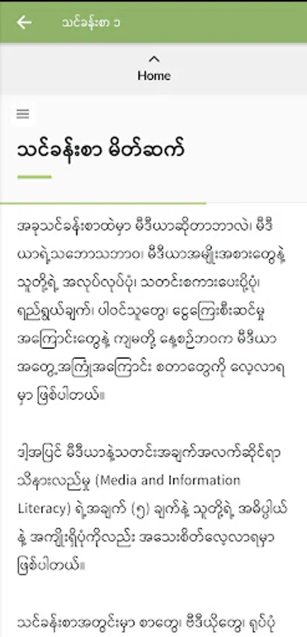 This application is developed with the aim to educate young adult users in Myanmar with media and information literacy (MIL) training. The course contains five modules covering,