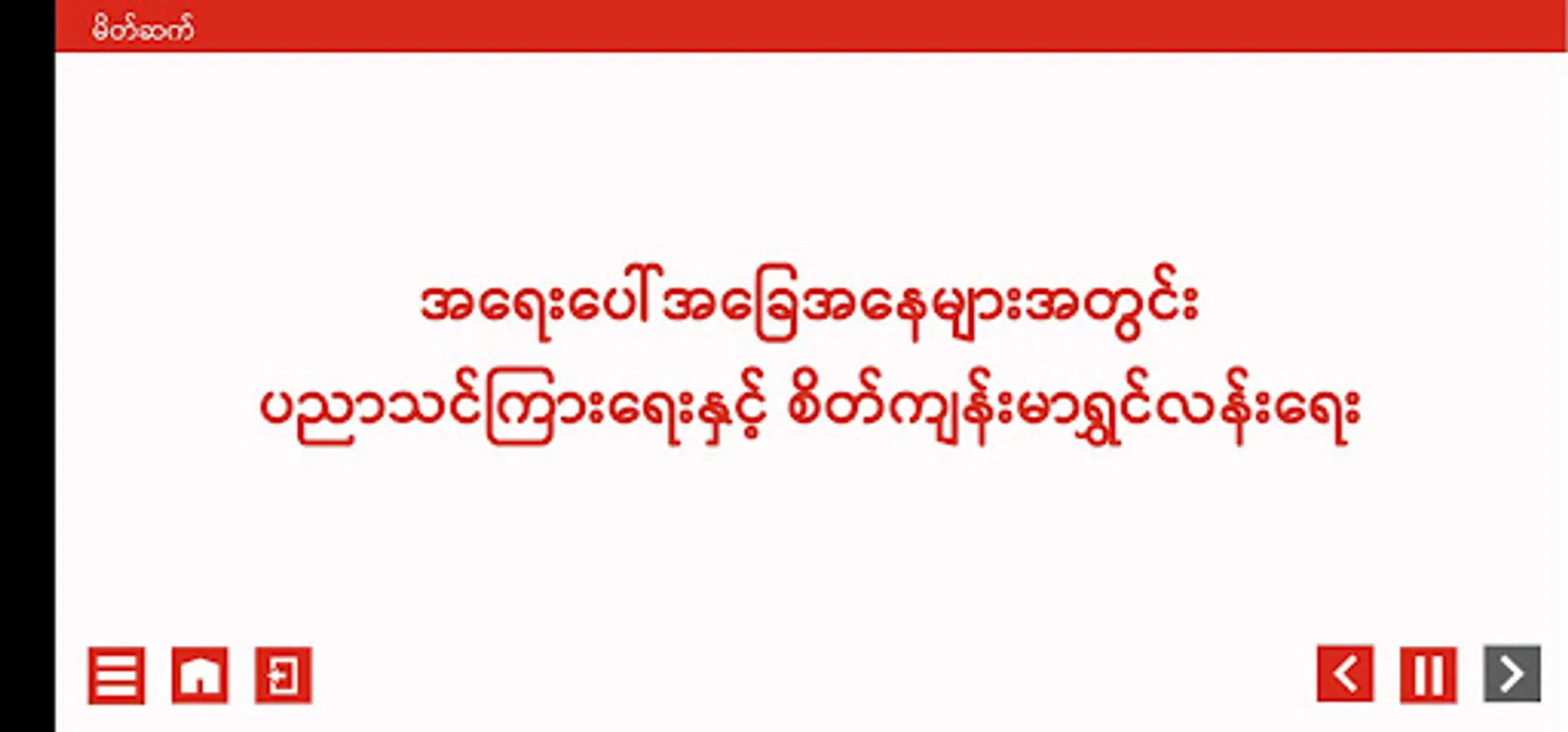In this application, the course is divided into the same three modules as given in the Teacher Training Handbook. Each of the three modules has three main sections – introduction, main content (with 3 or 4 sub-sections), and reflection. These sessions are meant to be delivered gradually over the course of several week or month -this allows teachers to practice what they have learned in the training in between sessions, as well as reflect on and troubleshoot challenges with colleagues as needed. Building a supportive community of teacher is part of empowering teachers to manage their own wellbeing, and as such, it is important that teachers foster these relationships.