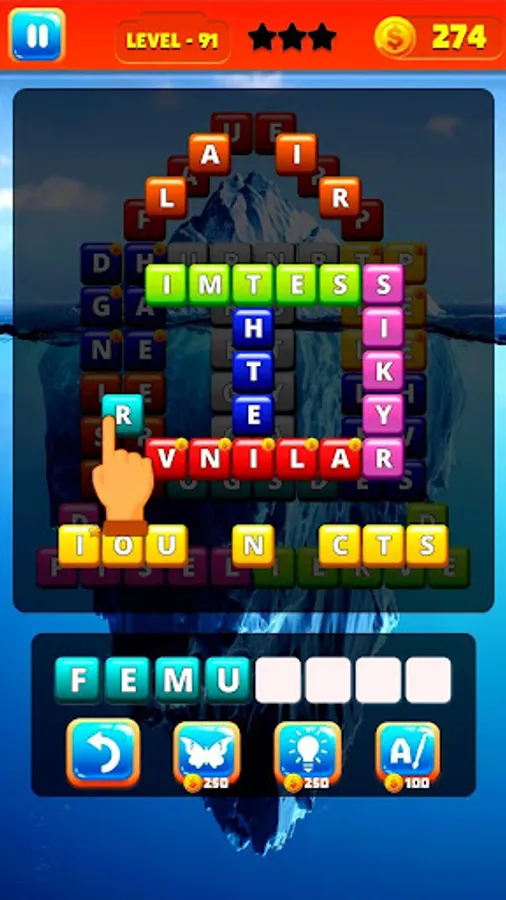 In each level there is a board with word stacks. Your mission is collect & hunt words from these word stacks and clear the board.