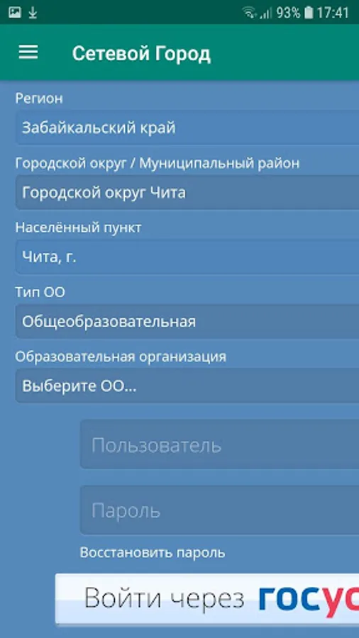 Entrance to the Network City Education Trans-Baikal Territory with a password and through State Services for students and their parents.