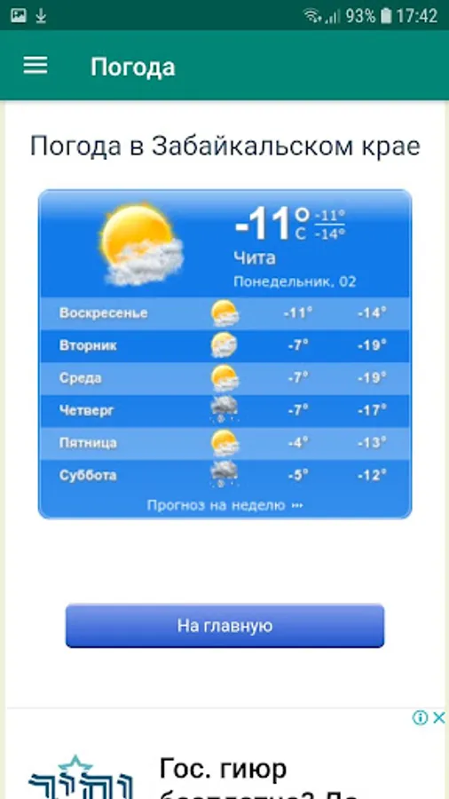 - The weather in the Trans-Baikal Territory for today and the forecast for the week.