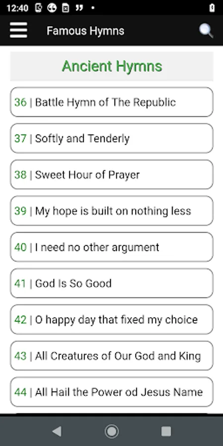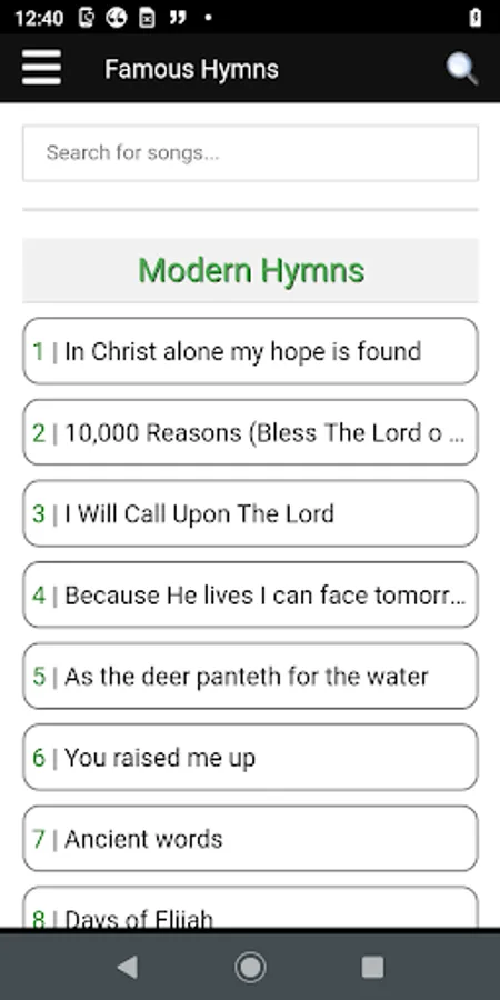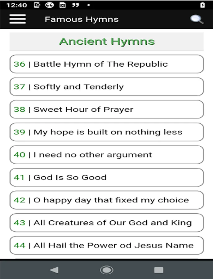 Modern and Ancient hymns. It can be used to Inspire Worship. All the hymns can be played along with its accompanying audio completely offline - a great way to practice singing every where you are.