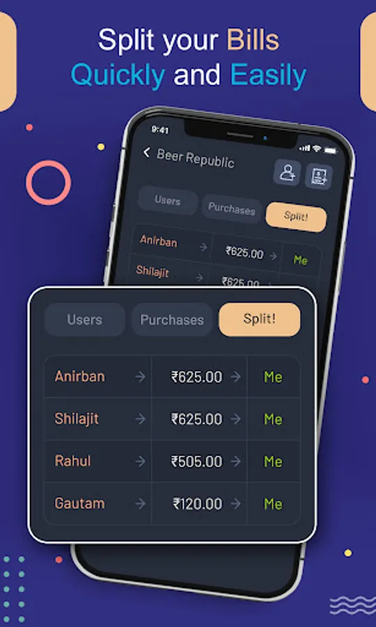 Even complicated bills can be split quickly and effortlessly with Usplit. And the best part is : it's