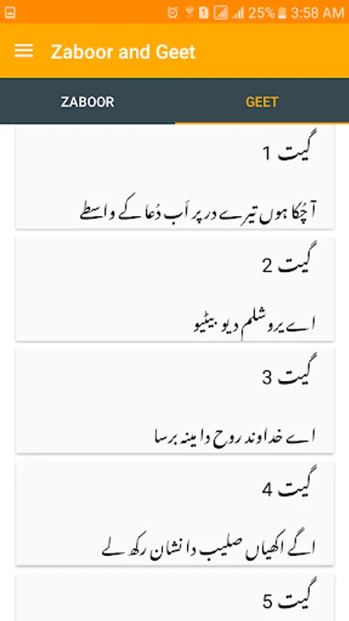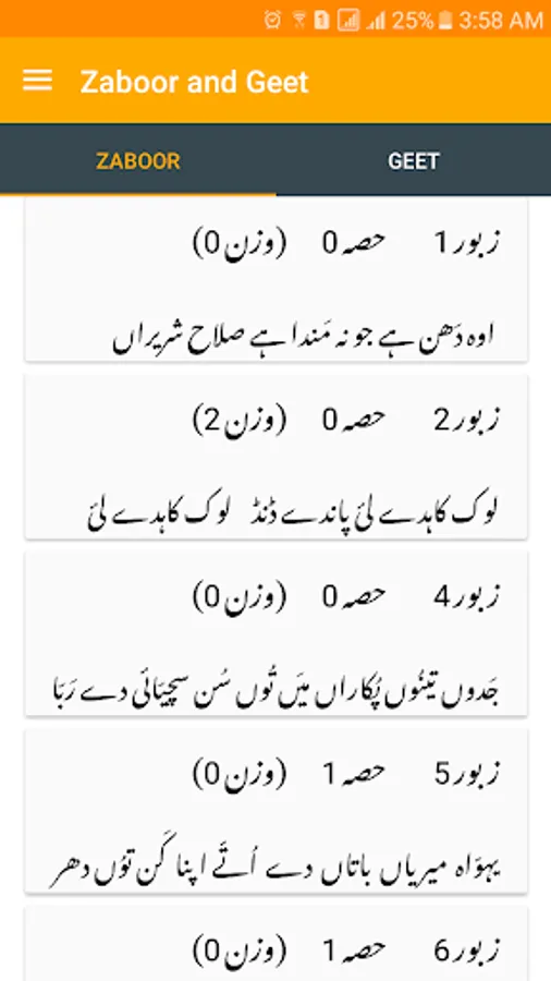 * All ZABOOR and GEET Titles are displayed on main screen so you can easily find by title if you don't remember its number.