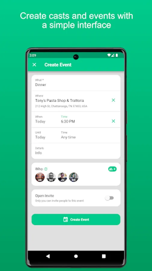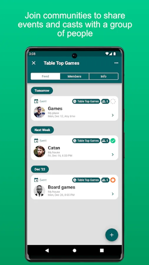 Friendcasts is an event planning tool that makes it easy to bring you and your friends together for fun times and meaningful connections. Unlike other apps that function like or require a social media account, Friendcasts is NOT a social media app. Friendcasts focuses only on the social aspect of bringing people together.