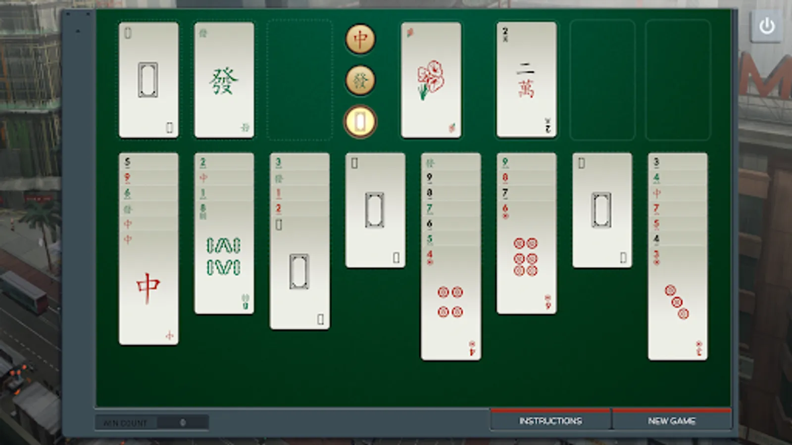 Shenzhen Solitaire: A FreeCell-inspired solitaire variant with a three-color deck based on mahjong tiles
