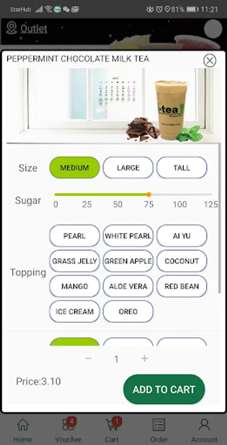 You can select the special outlet and the pick up time ,then the tea is done for you while you arrive at the outlet.