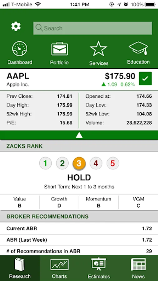 • View average broker recommendations.