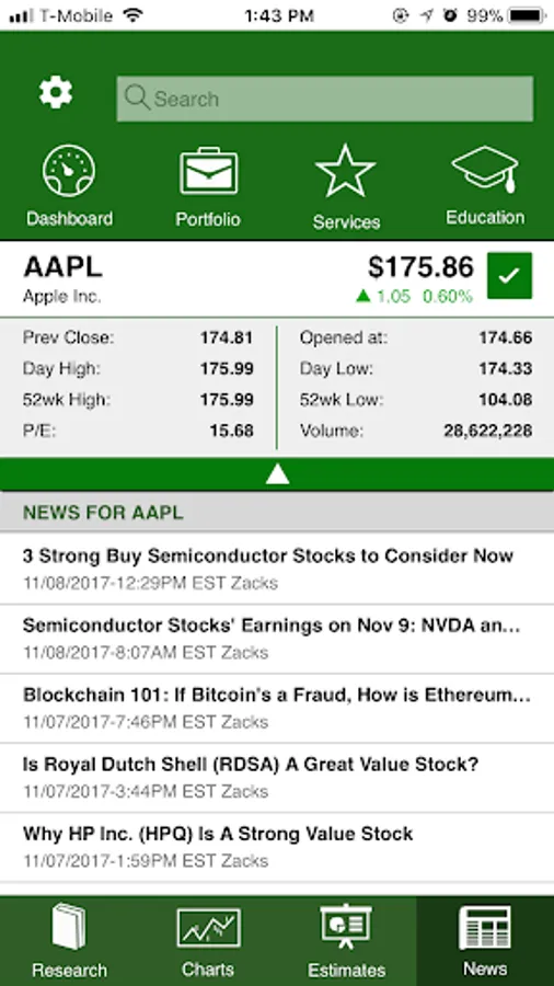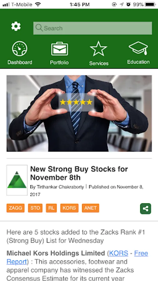 Zacks mobile app lets you: