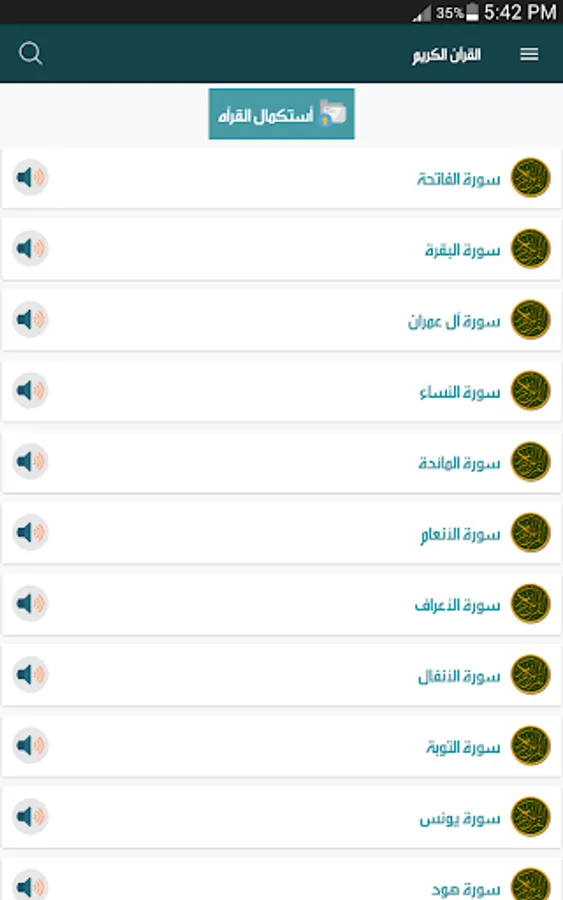 Holy Qur'an, the application contains the simplified Quran Indexer (and an audio library for listening to the Internet with the voice of 4 sheikhs)