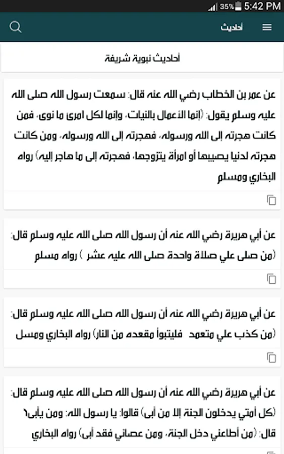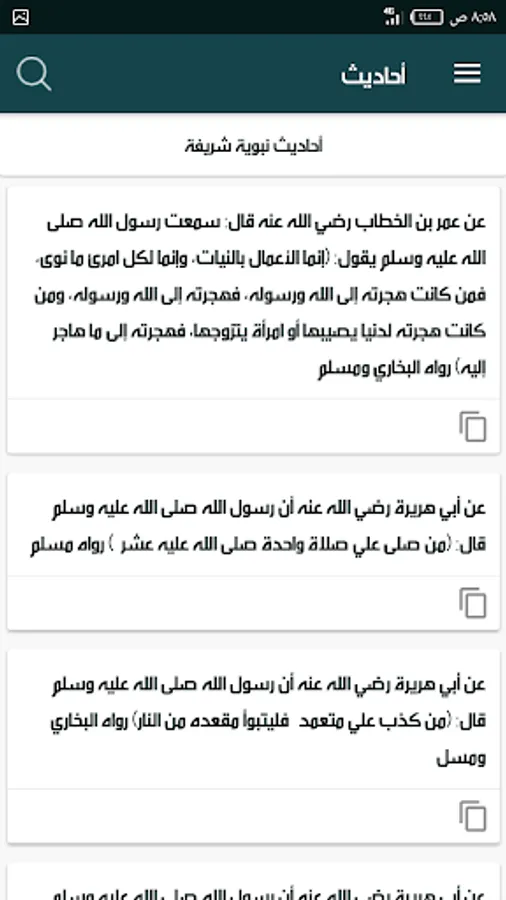 Hadiths, supplications, and adhkaar. An index of the hadiths, du'aa 'and du'aa' that can be copied and shared is constantly updated