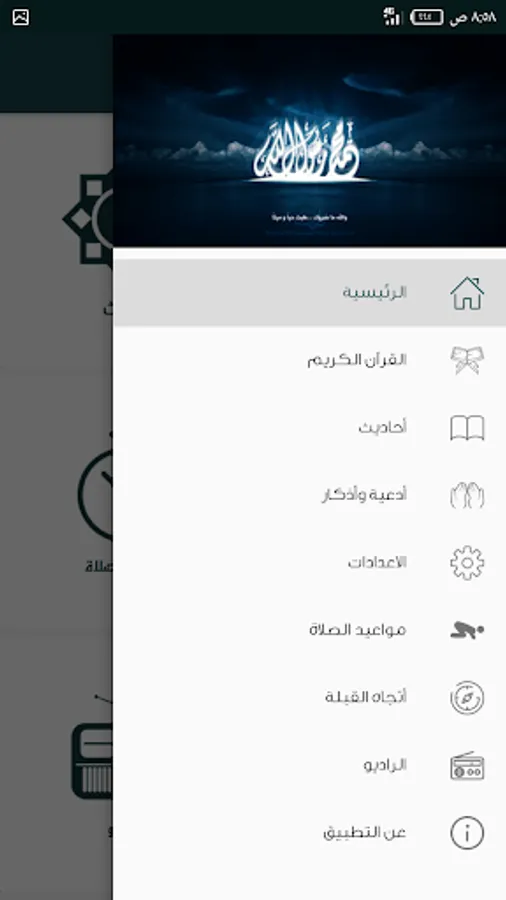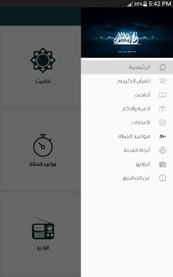 Compass to set the direction of the Qiblah easy and simplified interface, four Islamic radio stations (Internet)