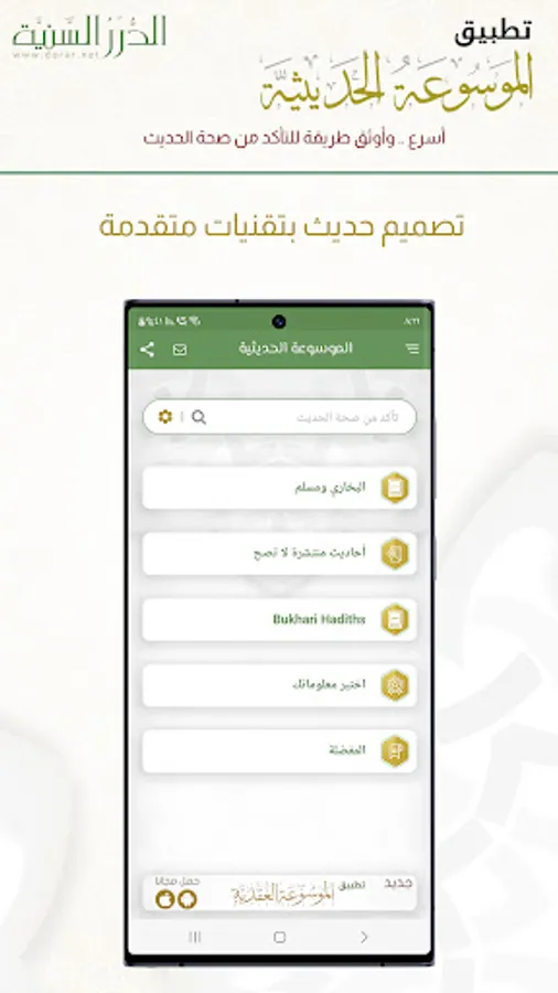 This is the only official application issued by the Sunni Pearl Foundation for the Hadith Encyclopedia.