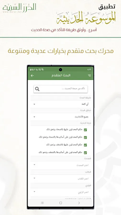 - Quick and advanced search in hundreds of thousands of hadiths with the rulings of the hadith scholars on them.