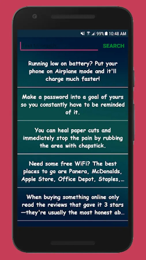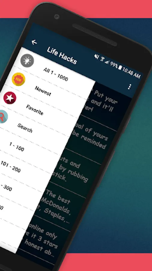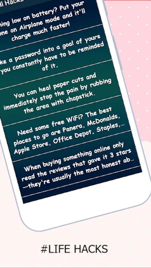 1000+ Life hacks, tips and tricks to optimize your life are available in this small app. It contains Life Tips & Tricks that are easy to share and save to favorites.