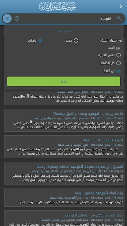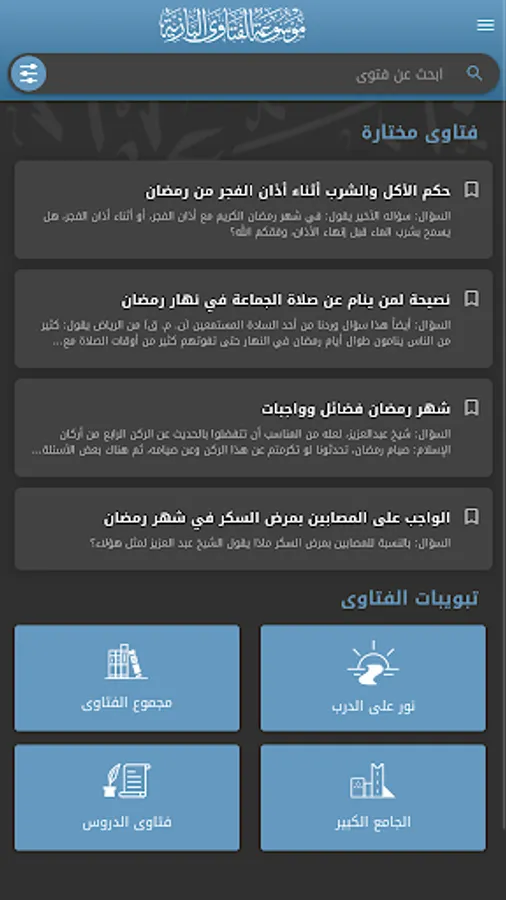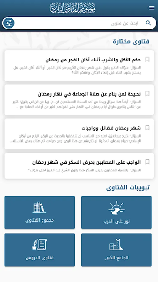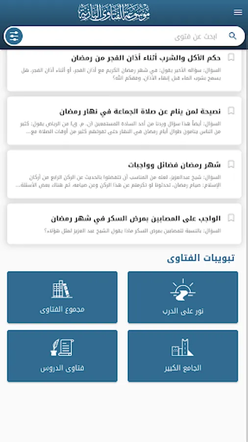 In this application - for the first time - thousands of fatwas were collected from the Sheikh's programs, lessons and books collected by his students, and presented in a documented technical and cognitive framework in the hands of the honorable user