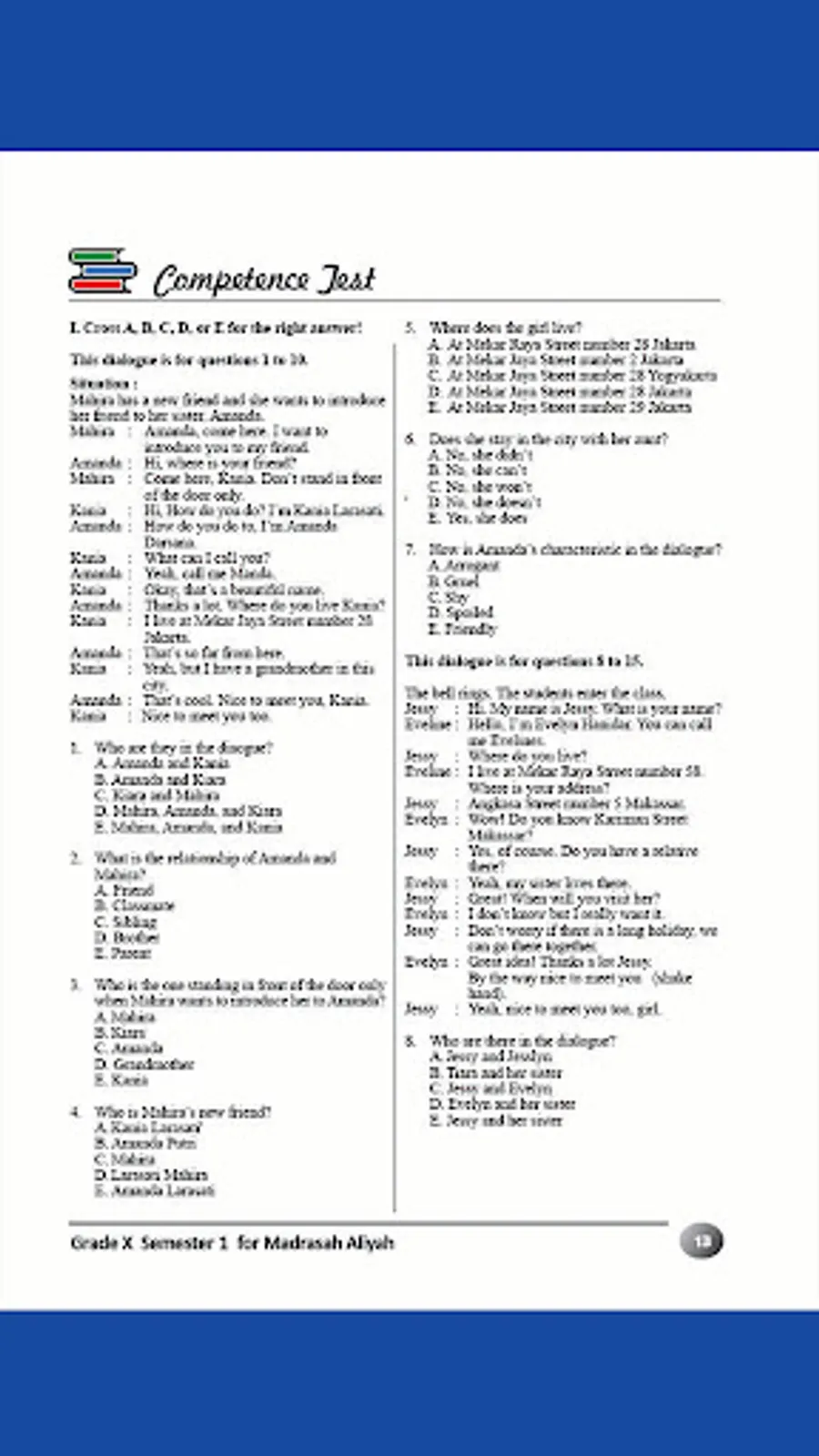 Pious English X-1 is an English book for Class X Semester 1 MA/SMA students.