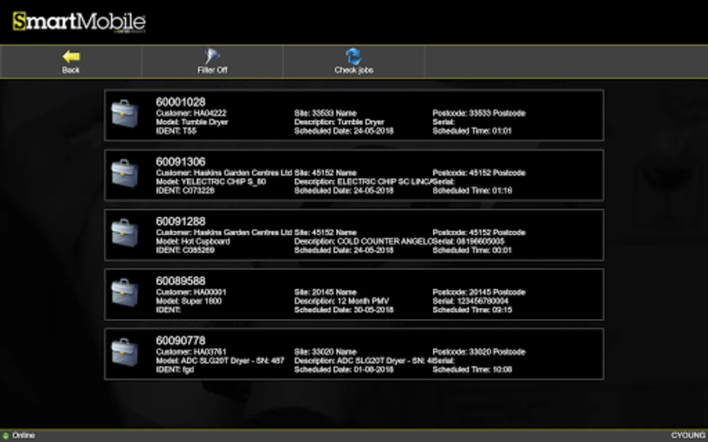 • View his or her current job list, which will be updated from Smart in virtually real-time. Visual and aural alerts will ensure that engineers always know when details of new jobs have arrived.