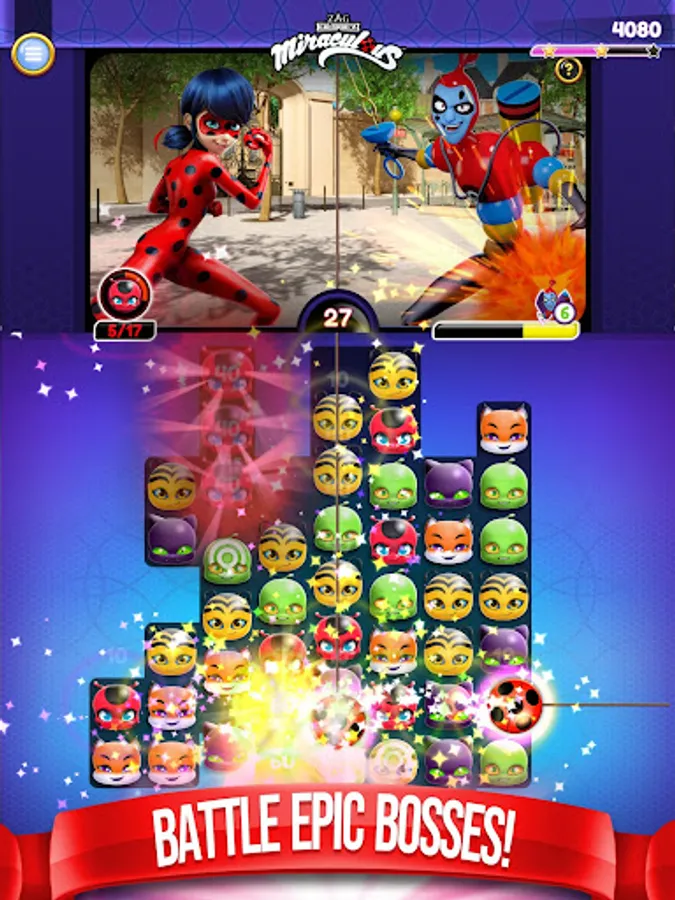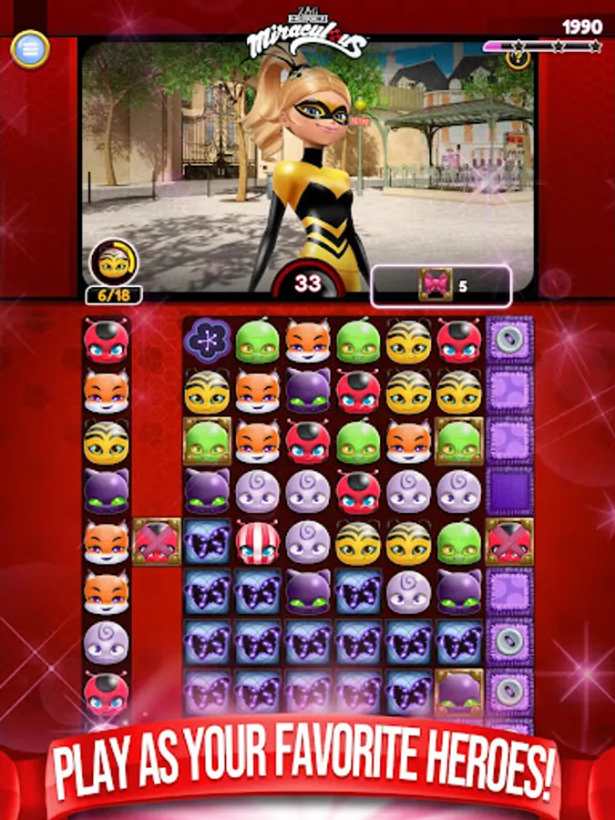 Line up the adorable Kwamis and use Ability Jewels to earn the highest score in each stage, then fight against your favorite akumatized villains in challenging boss battles.