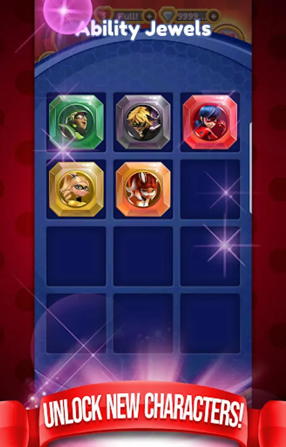 • Collect characters (Ability Jewels) such as Ladybug, Cat Noir, Carapace and Rena Rouge, and use them in any level you want!