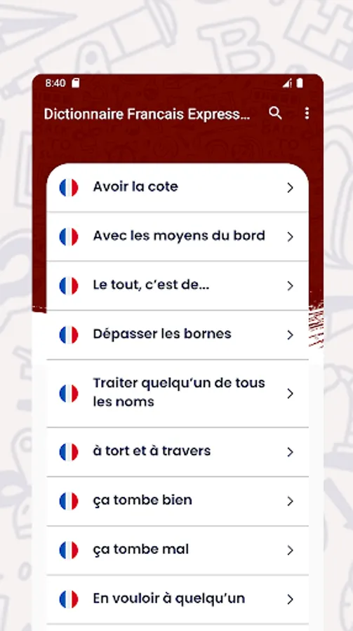 Containing more than 600 most used expressions in everyday French language, with their meanings and examples to understand the meaning of the sentence and enrich your vocabulary to improve your level and learn authentic French.