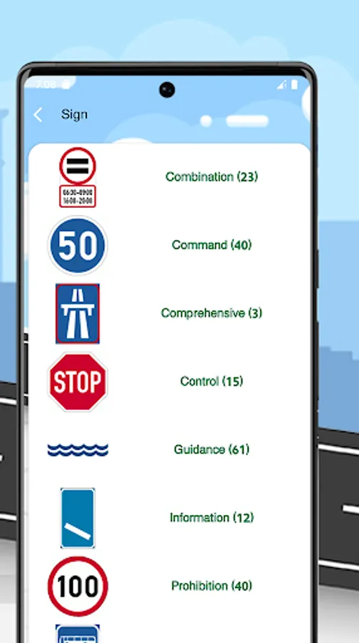 The app has a comprehensive learning section covering the rules of the road for different vehicle types (motorcycle, car, and truck). It provides access to over 700 road signs, including their names, purpose, and locations. You can also learn the controls for each vehicle type with a touch of a button.
