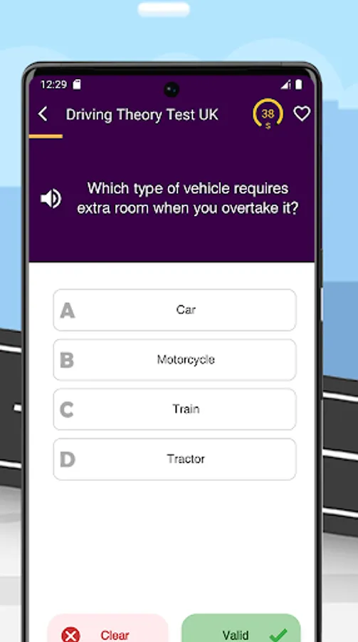 Our Driving Theory Test UK features four different modes: Test mode to simulate the testing environment, Starred mode to save questions that interest you, Cramming mode to quickly review questions and answers, and an audio feature to read out the questions and answers.