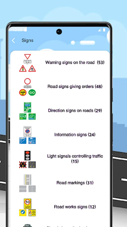 Our app boasts several features, including 700+ specific questions and answers covering all signs and rules, updated and challenging questions, and the ability to use the app without an internet connection, anytime, anywhere, including on your way to the test!