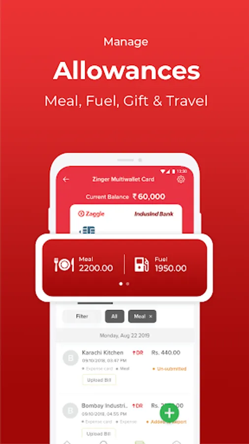Receive your Meal, Fuel, Gift and Travel allowances in the Zinger multiwallet card and spend at any corresponding Visa enabled merchant across India