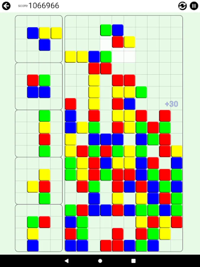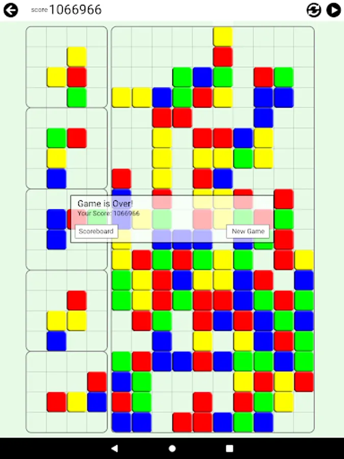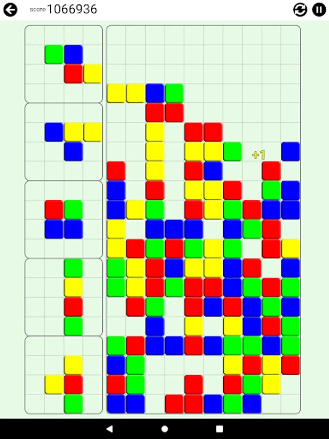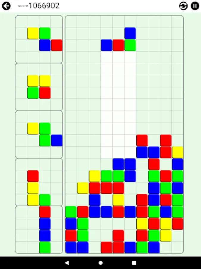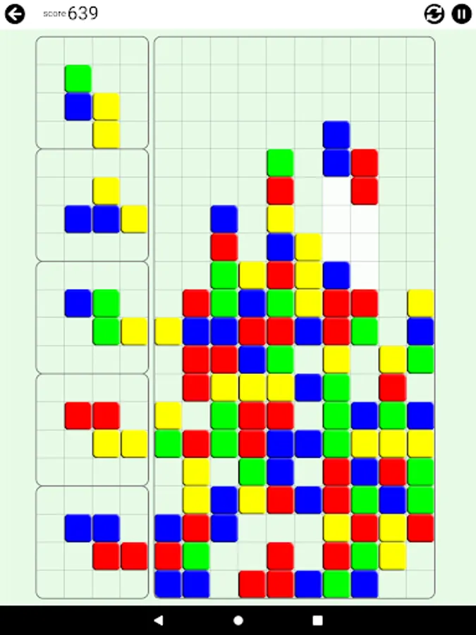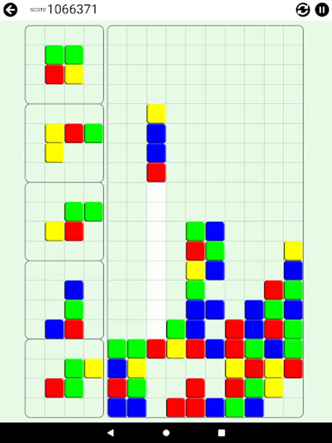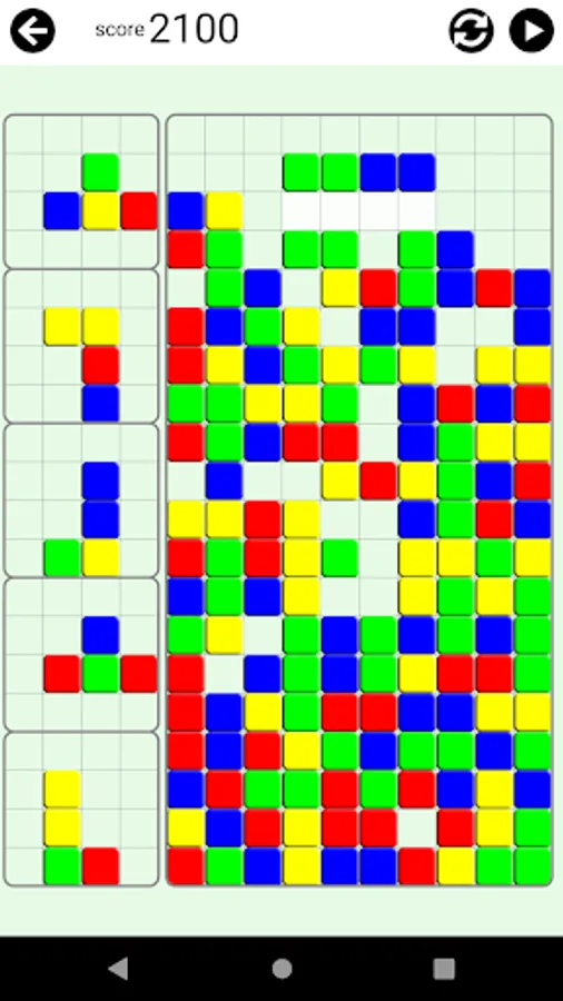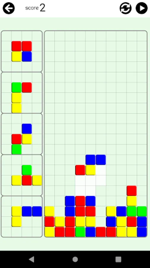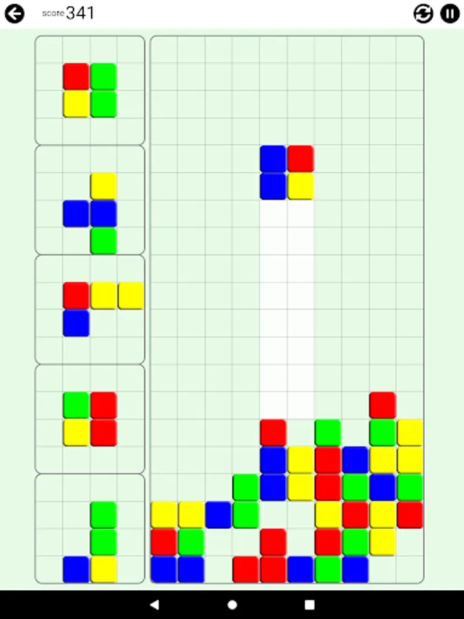 The pieces with different color blocks will fall. Arrange them in a way that 4 or more blocks in the same color lay to next to each other in any shape.
