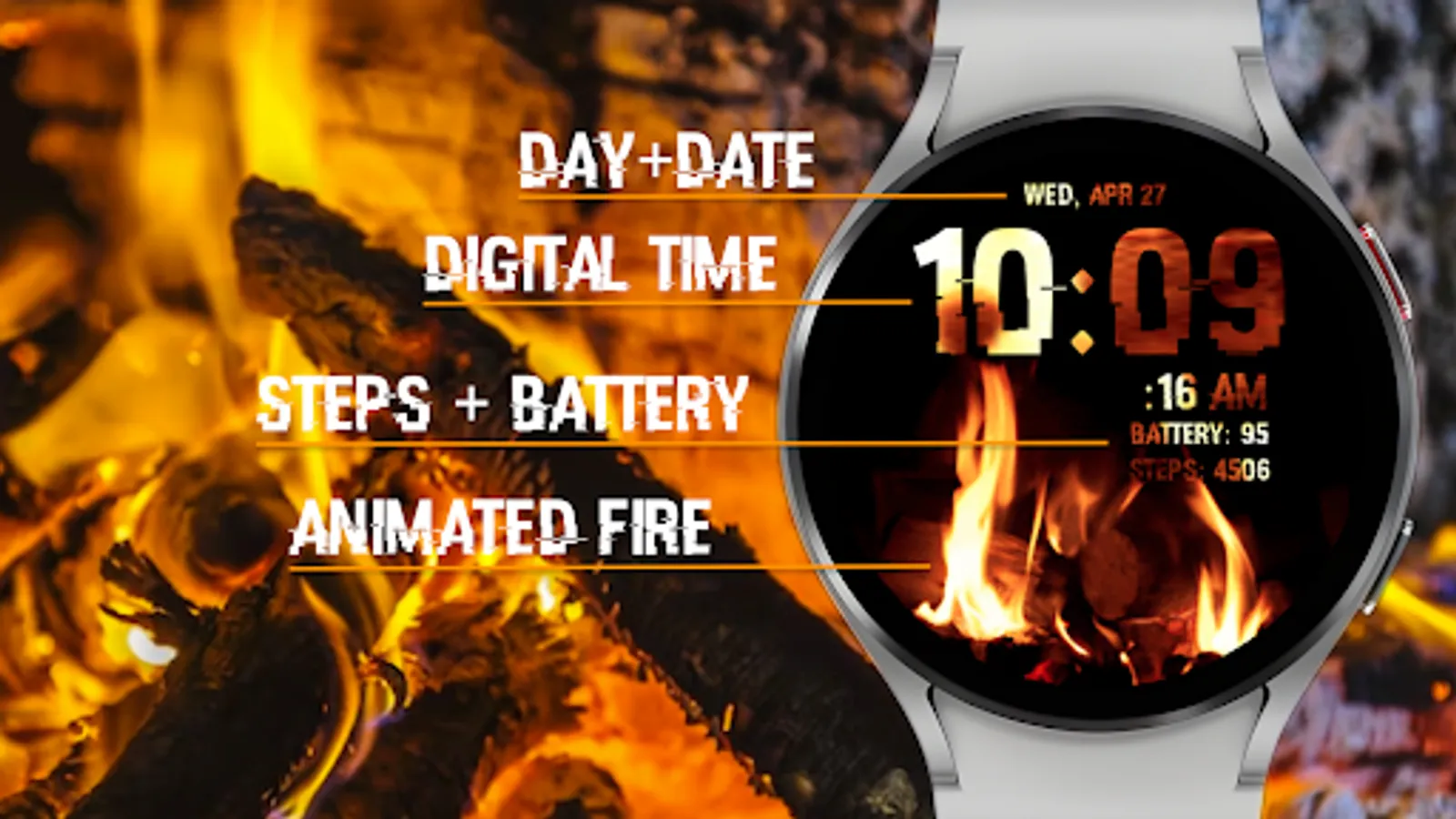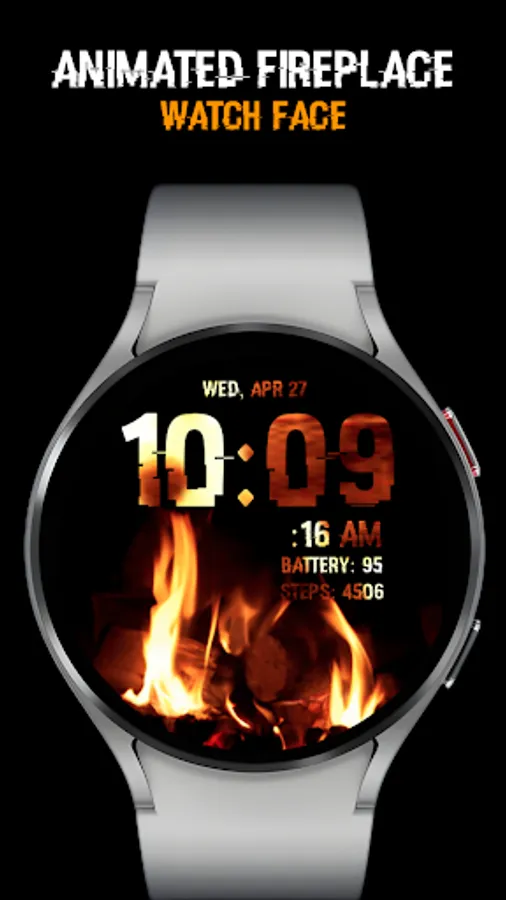 Fireplace Animated Watch Face brings a unique way of time viewing to your Wear OS watches.