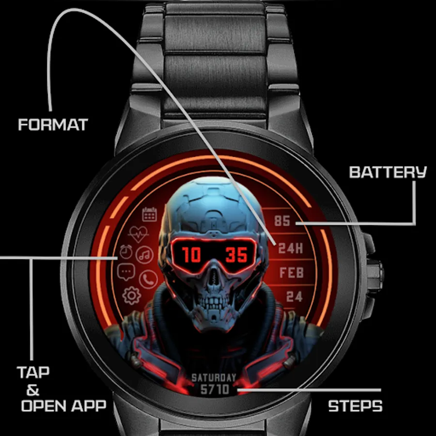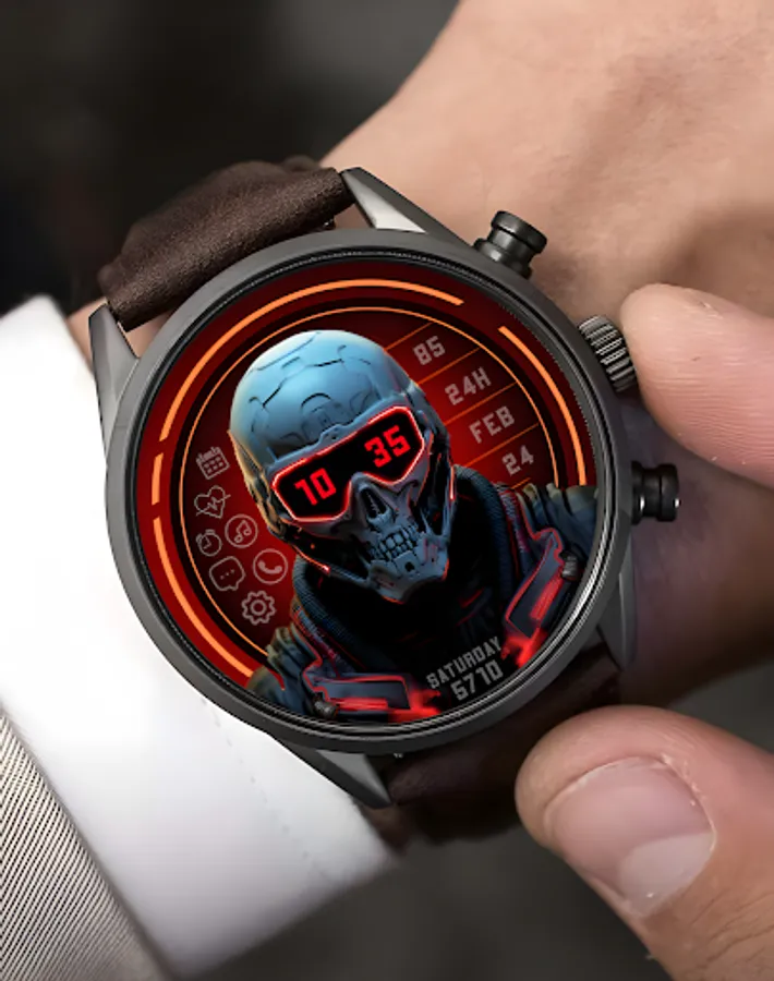Skull Master Watch Face brings a unique way of time viewing to your Wear OS watches.