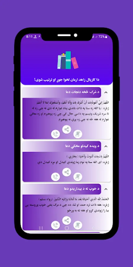 په دي اپليکيشن کي مونږ تاسو ته اسلامي دعاګاني ځاى په ځاى کړي تاسو کولاى شئ چي په اسانئ سره يي کافي او هم له ملګرو سره شريک کړئ مننه