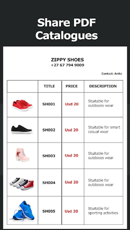 Zahomy digital catalog maker(catalogue maker) app helps you to make simple product catalogs(catalogues) for your business which you can share as PDF, images or weblinks on WhatsApp, Facebook and many other apps.