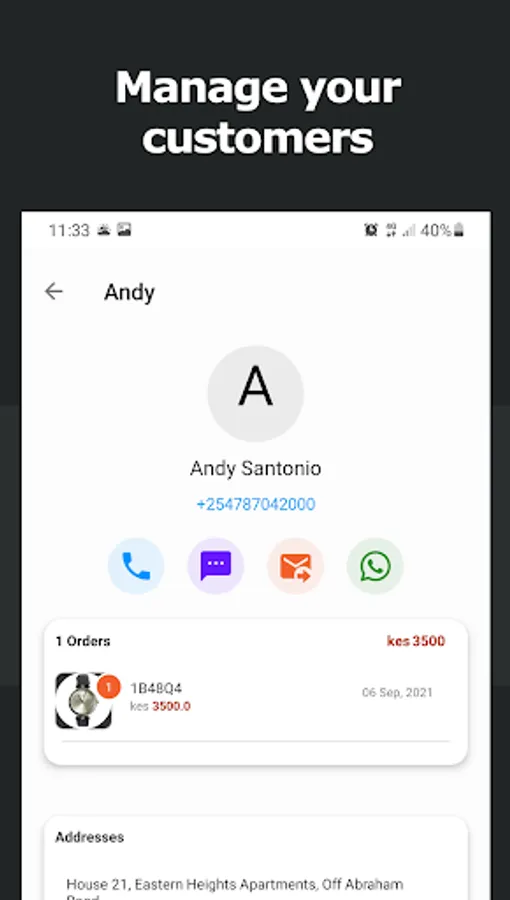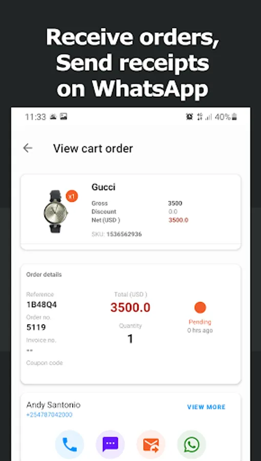 Sell your products, new orders are sent to you via app, WhatsApp and email. Spend more time closing sales.