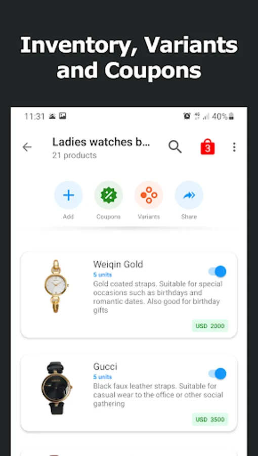 This digital catalog maker(catalogue maker) app also creates an online shop/store to help you sell faster and manage your inventory easily. It works very well offline and uses very little phone storage.