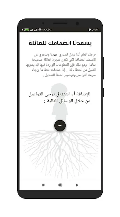 Through the application you can browse the tree and know your relatives, and you can add your name and family names to the family