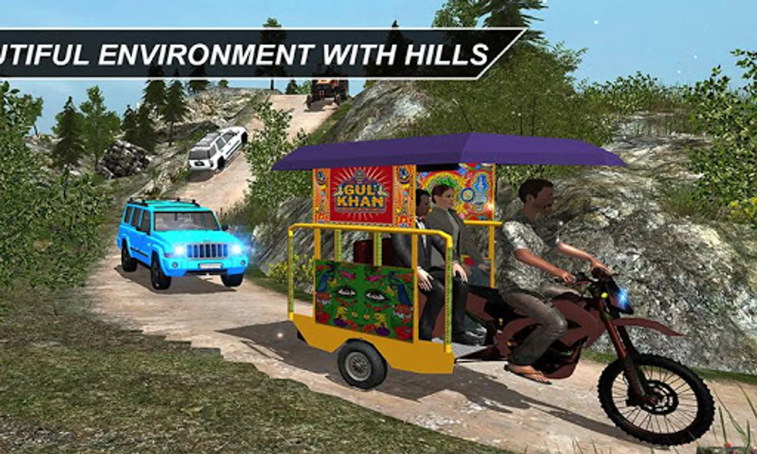 Along with beautiful environment, excellent controls and graphics, folk music is an excellent addition. You will definitely fall in love with this game once you will start playing this. Traditional themes and patterns are being followed so you will actually feel yourself in Pakistani or Indian hills. Billboards and hoardings on your way are specifically placed in Urdu language so real feelings can be given. Local poetry is also added on tuk tuk which will make you laugh.