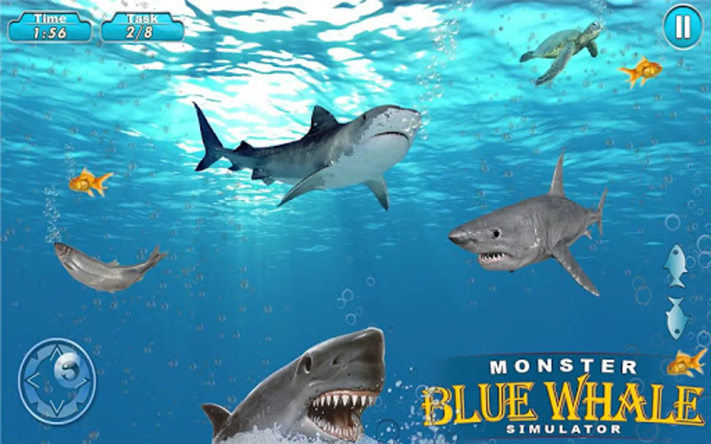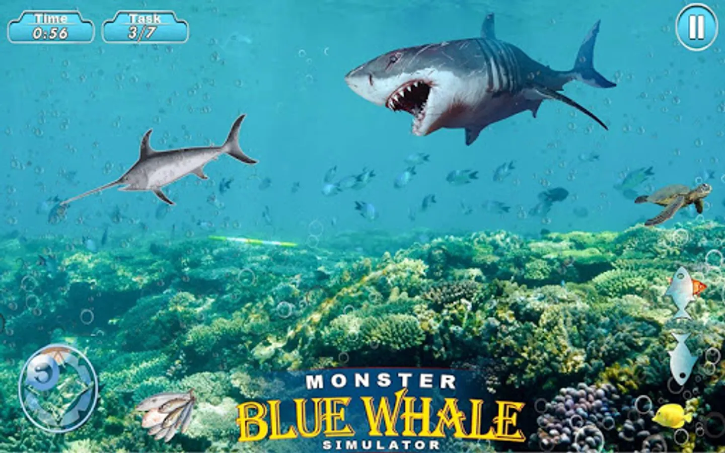 You are not the only killing machine in this blue sea, there are other fishes and creatures as well. Mind your health, hunger and super energy indicators – if one of them drops, you ultimately may die immediately! Swim in the Blue Ocean fearless and expanses, search for little fish to kill them and eat them as your dinner, find the tiny fish or so-called plankton to feed. Giant blue killer whales live in pods for survival challenge and your real mission is to explore the deep ocean in this crazy Super Monster Blue Whale Shark Game. Experience the life of wild killer blue whales in this survival and attack simulator. Massive Ocean survival is a team effort, but you are not a team you are on your own, all alone in this blue ocean to kill and survive a super life. It is hard and challenging missions even for gigantic creatures like blue massive whale and shark. Experience the life of the cruel and biggest animals ever known to have lived on Earth who survive. The size of amazing blue whale is an actual massive 100 feet which is bigger than a Boeing airplane and weigh up to super 200 tones. Blue whales feast on real small fishes and other sea animals they kill to fulfill their hunger and survive in deep blue sea. Complete the survival challenge kill and hunt the super tiny fishes and swim freely in huge underwater, stay away from the killer and poisonous fishes in this amazing blue water environment. Unleash attack of the cruel whales on other fish and sea animals - you’re a real massive big blue whale shark, but still have to fight for survival and life. You are against the poisonous blue see creatures and against death from hunger. Ocean has plenty of tiny fish for you to eat! Find your place among it with wild blue killer whales in wild water.