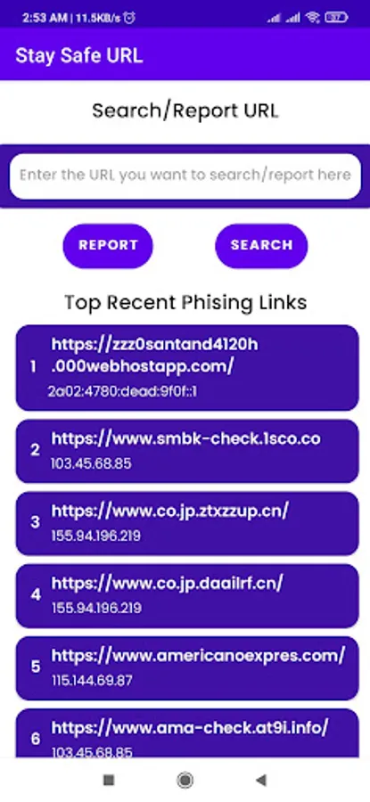 An application made for everyone who cares about URL security. In this app you can scan an url and see the results about the security, report a suspicious URL and see the results after processed, and see top recent phising links. Stay safe, stay connected.