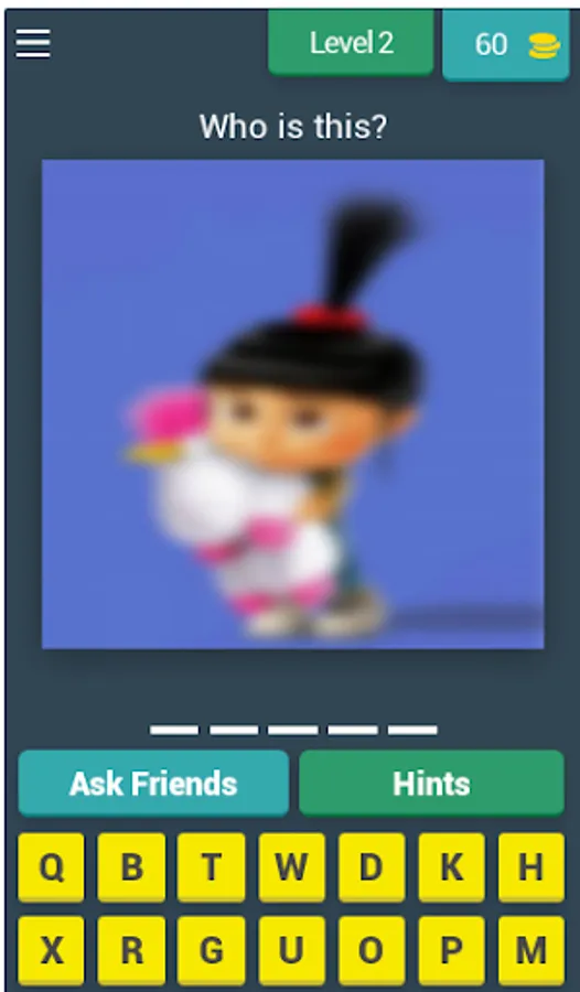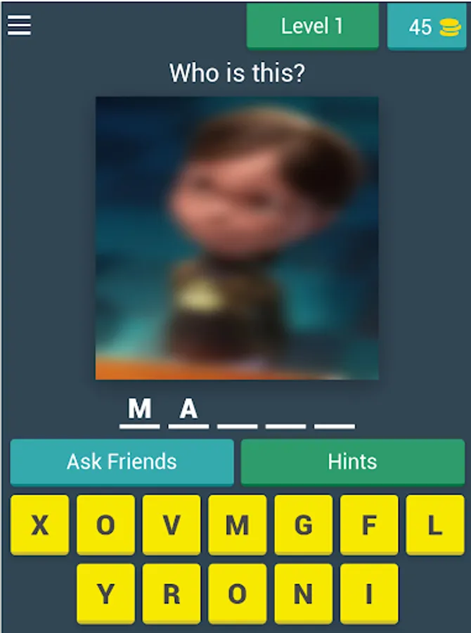The idea of the game: Guess the picture and write the answer in a correct spelling way, and every new level you win 30 coins, there is a way to help you as writing the first letter or skipping the entire level